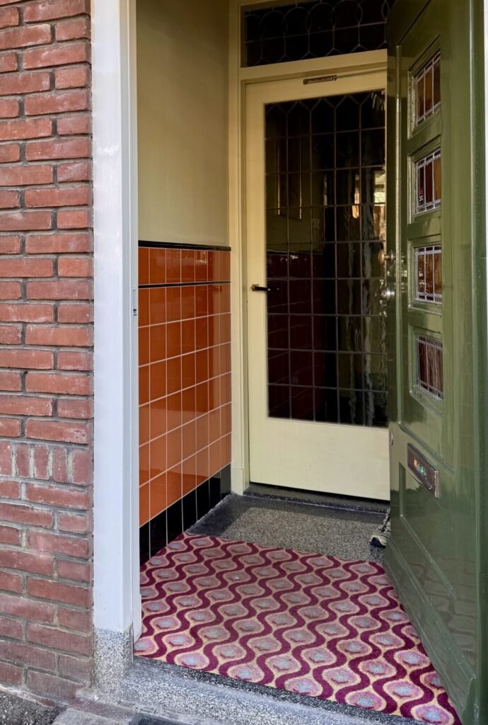 Zo brachten we opnieuw jaren ‘30 tegeltjes aan in de hal en het toilet, we plaatsten sierlijsten op de plafonds van de benedenverdieping én er kwam een granito vloer in de hal te voorschijn die we nog wat liefde moesten geven.